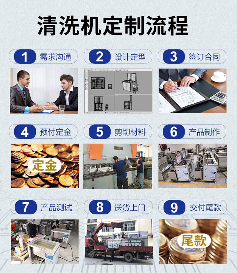 上料→超聲粗洗→超聲粗洗→超聲波粗洗→超聲精洗→超聲精洗→超聲波精洗→熱風(fēng)干燥→下料